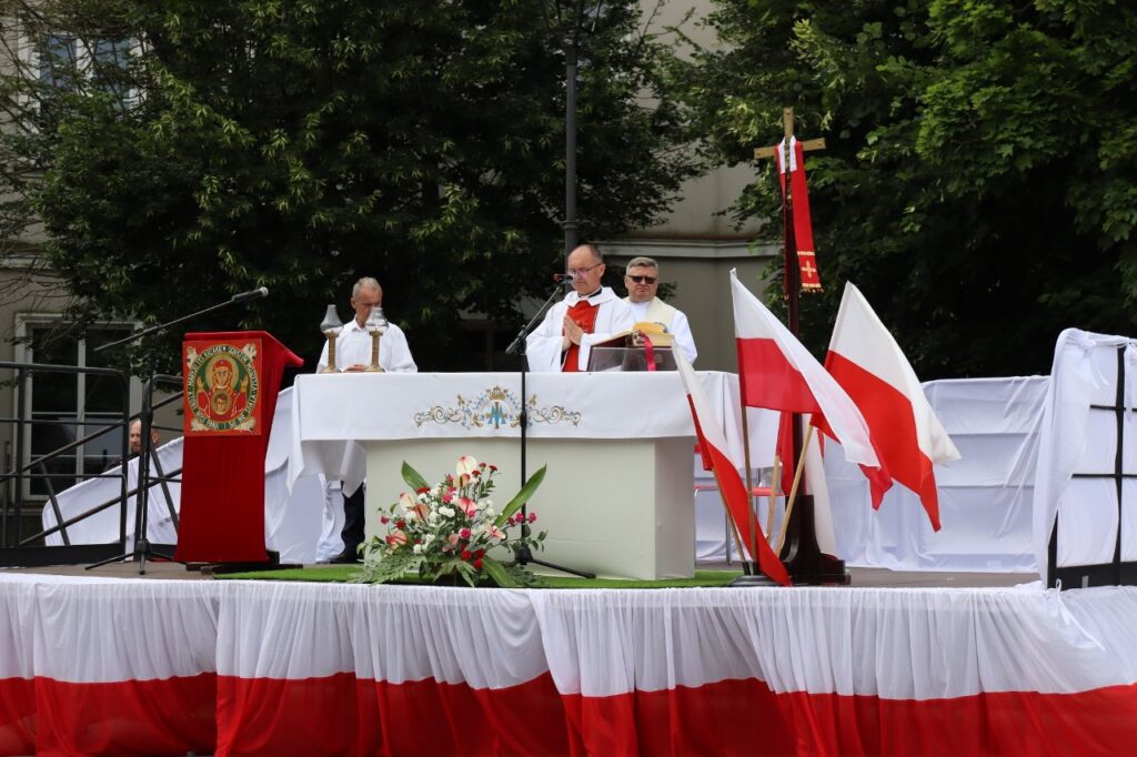 O godz. 12.00 rozpoczęła się Msza Polowa odprawiona zgodnie z ceremoniałem wojskowym : Apel Pamięci , salwa honorowa , dodatkowo została odsłonięta tablica pamiątkowa ufundowana przez Fundację Maszerujemy oraz Burmistrza Miasta Łęczyca którą odsłonili : Prezes Fundacji Marcin MICHALAK , Burmistrz Miasta Łęczyca Paweł KULESZA , Zastępca Dowódcy Operacyjnego Rodzajów Sił Zbrojnych gen.dyw.pil. Dariusz MALINOWSKI , Dyrektor Biura Konwentu Dziekanów płk Krzysztof JEWGIEJUK oraz Dowódca Garnizonu Łęczyca ppłk.pil. Mariusz KOŚCIELAK . Na koniec odbyła się defilada pododdziałów 25 Brygady Kawalerii Powietrznej po której wszyscy zostali zaproszeni na dziedziniec Zamku Królewskiego , gdzie na wszystkich czekały pyszności przygotowane przez Koła Gospodyń Wiejskich z powiatu łęczyckiego i zgierskiego .