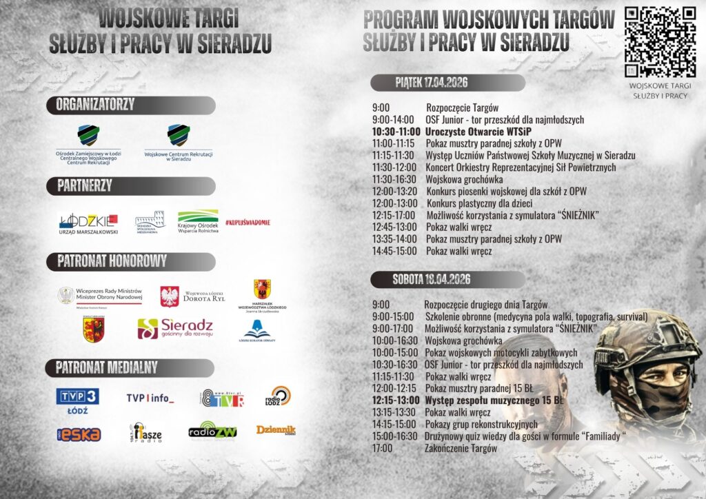 Na Zaproszenie Wojskowego Centrum Rekrutacji w Sieradzu nasza fundacja w dniach 17-18.04.2026r będzie wystawiała swoje stanowisko promocyjne na terenie 15 Brygady Łączności w Sieradzu.