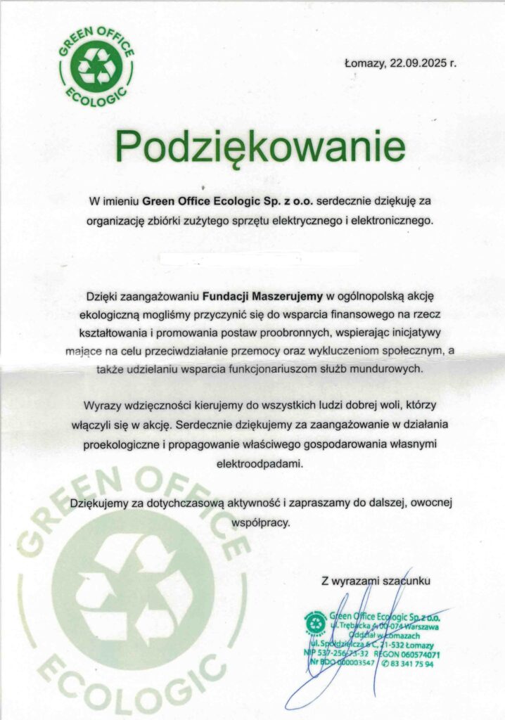 Zakończyła się kolejna zbiórka zużytego sprzętu z którego dochód przeznaczony zostanie na działalność statutową fundacji.